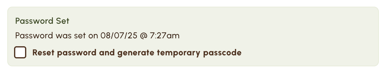 Once reset, a temporary PIN or password will appear in the employee list.